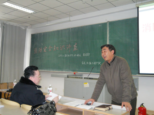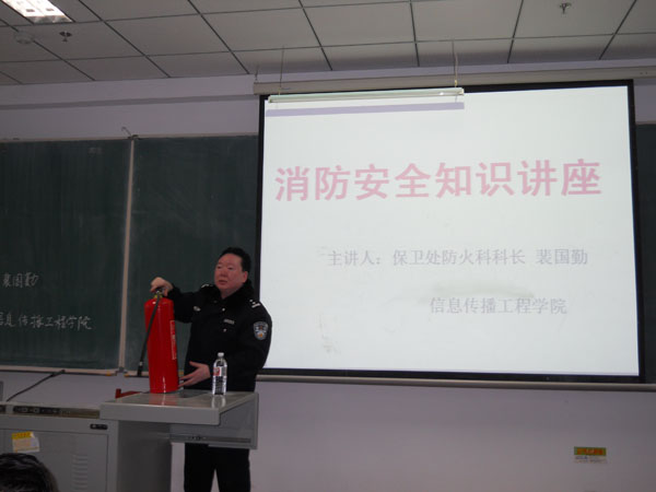 为了广泛提高全院师生的消防安全意识,认真加强“四个能力”建设,BG大游于2010年12月1日下午2:30分在教学科研楼401举办了消防安全知识讲座。BG大游官方网站保卫处防火科科长裴国勤主讲,公司全体教师和主要员工干部参加了本次讲座。